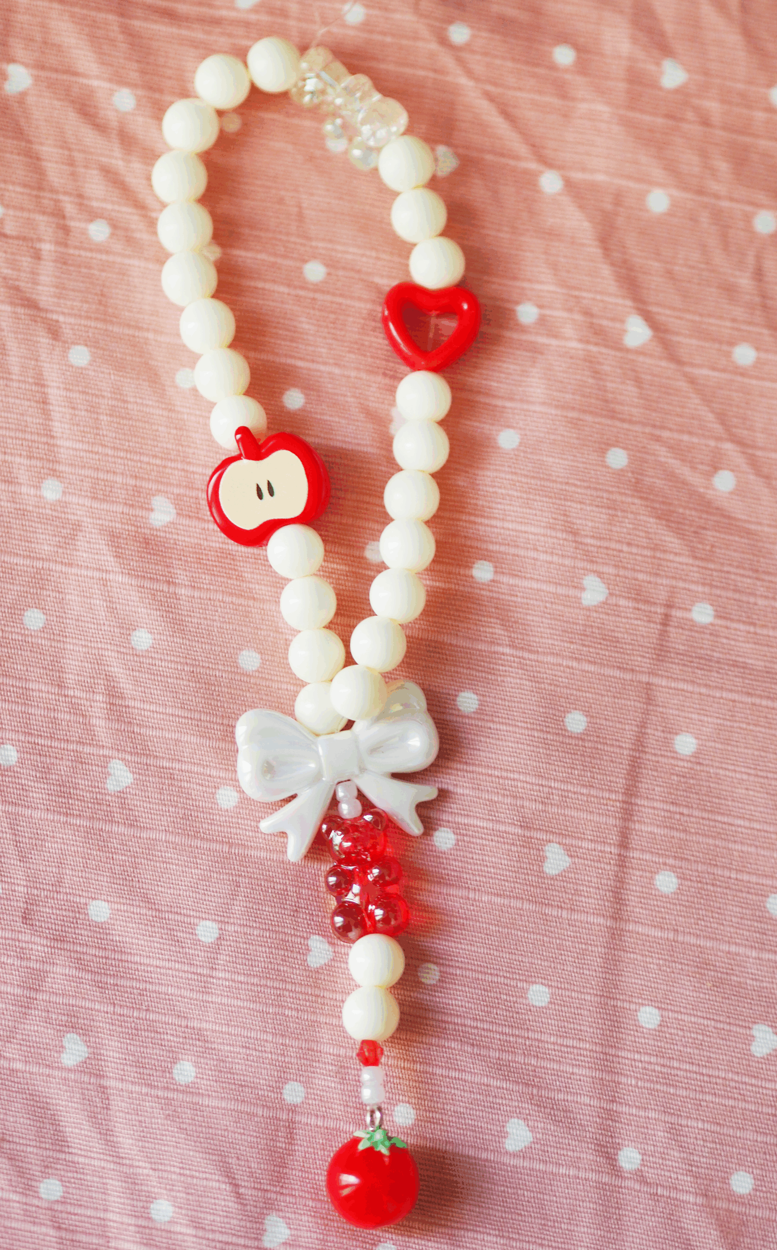 Handmade phone charm made with a cute and colorful selection of beads 🍎